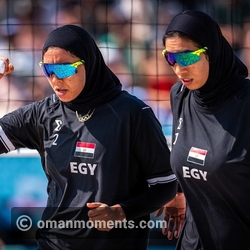 The Egyptian beach volleyball players, Marwa Abdelhady and Elghobashy Doaa, competed in their hijab against Spanish players Lilianie Fernandez Steiner and Paula Soria Gutierrez.