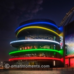 The 3-2-1 Museum was built next to Khalifa International Stadium and consists of two buildings: the main building that runs along with one of the stadium's arches, and a round building attached to it, inspired by the five Olympic rings.