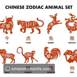 Chinese zodiac, or shengxiao (/shnng-sshyao/ 'born resembling'), is represented by 12 zodiac animals. In order, they are the Rat, Ox, Tiger, Rabbit, Dragon, Snake, Horse, Goat, Monkey, Rooster, Dog, and Pig.