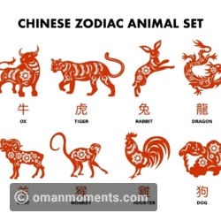 Chinese zodiac, or shengxiao (/shnng-sshyao/ 'born resembling'), unlike the general zodiac, is represented by 12 zodiac animals. In order, they are the Rat, Ox, Tiger, Rabbit, Dragon, Snake, Horse, Goat, Monkey, Rooster, Dog, and Pig.
