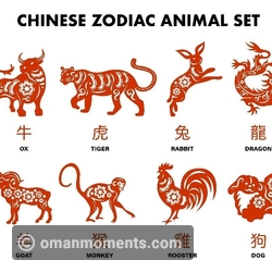 Chinese zodiac, or shengxiao (/shnng-sshyao/ 'born resembling'), is represented by 12 zodiac animals. In order, they are the Rat, Ox, Tiger, Rabbit, Dragon, Snake, Horse, Goat, Monkey, Rooster, Dog, and Pig.