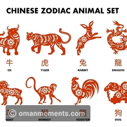 Chinese zodiac, or shengxiao (/shnng-sshyao/ 'born resembling'), unlike the general zodiac, is represented by 12 zodiac animals. In order, they are the Rat, Ox, Tiger, Rabbit, Dragon, Snake, Horse, Goat, Monkey, Rooster, Dog, and Pig.